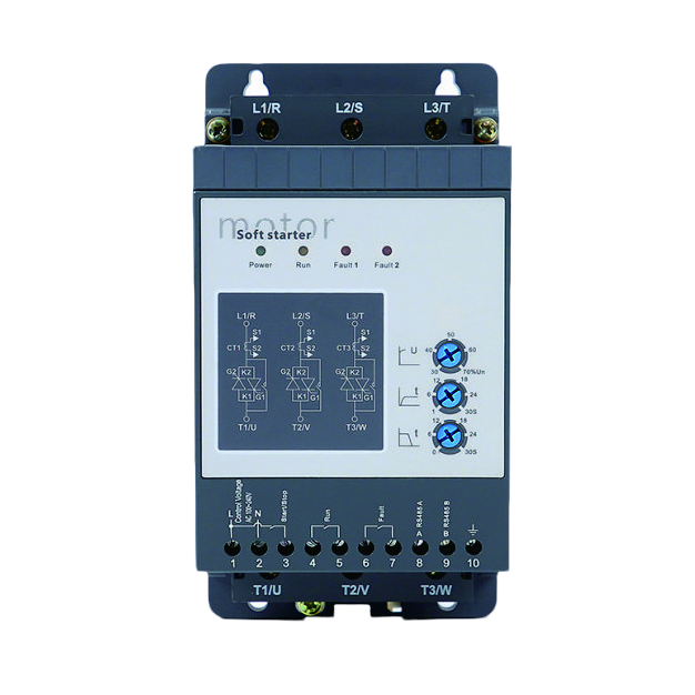 自主研发全新型数字式电机软起动产品 , 完美控制电机在起动过程中平滑加速、停止过程中平滑减速,并停供针对电动机及产品自身的保护功能。功率范围为0.75-75KW,支持单相电机规格,集成内置旁路和可扩展的紧凑型中小功率软启动器。广泛应用于机械设备配套。体积小适应性强。